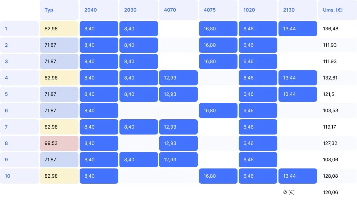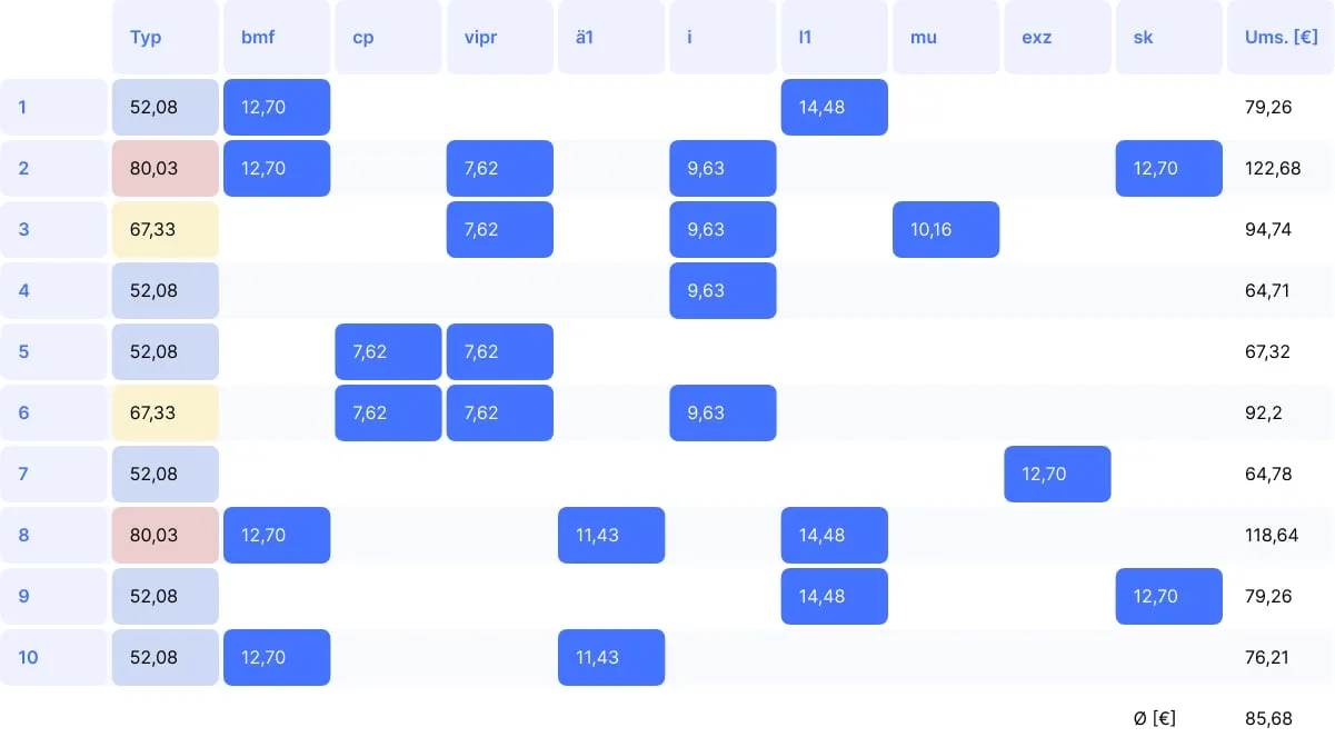 Durchschnittlicher Umsatz BEMA: 85,68 €