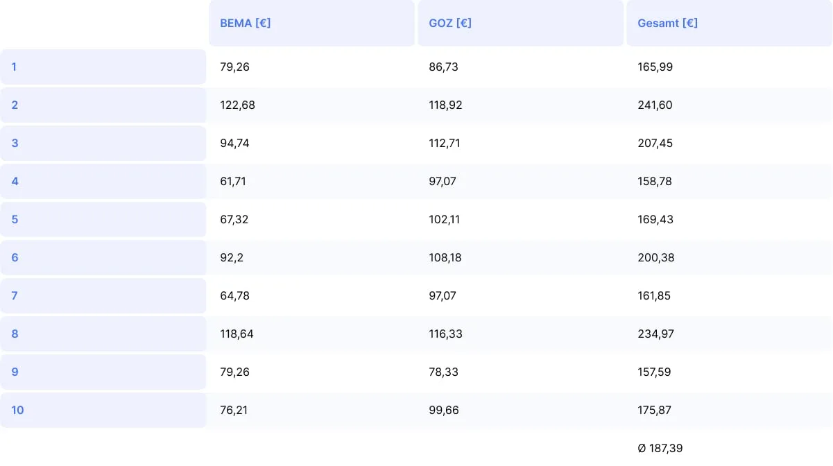 Durchschnittlicher Umsatz GOZ: 120,06 €