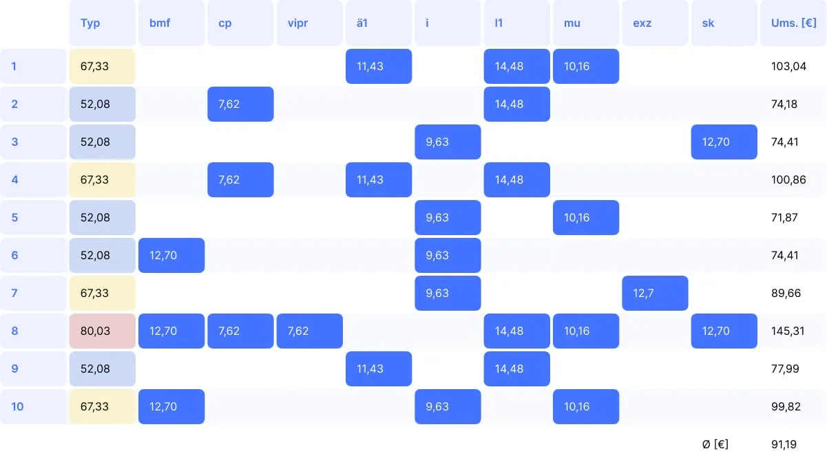 Durchschnittlicher Umsatz BEMA: 91,19 €